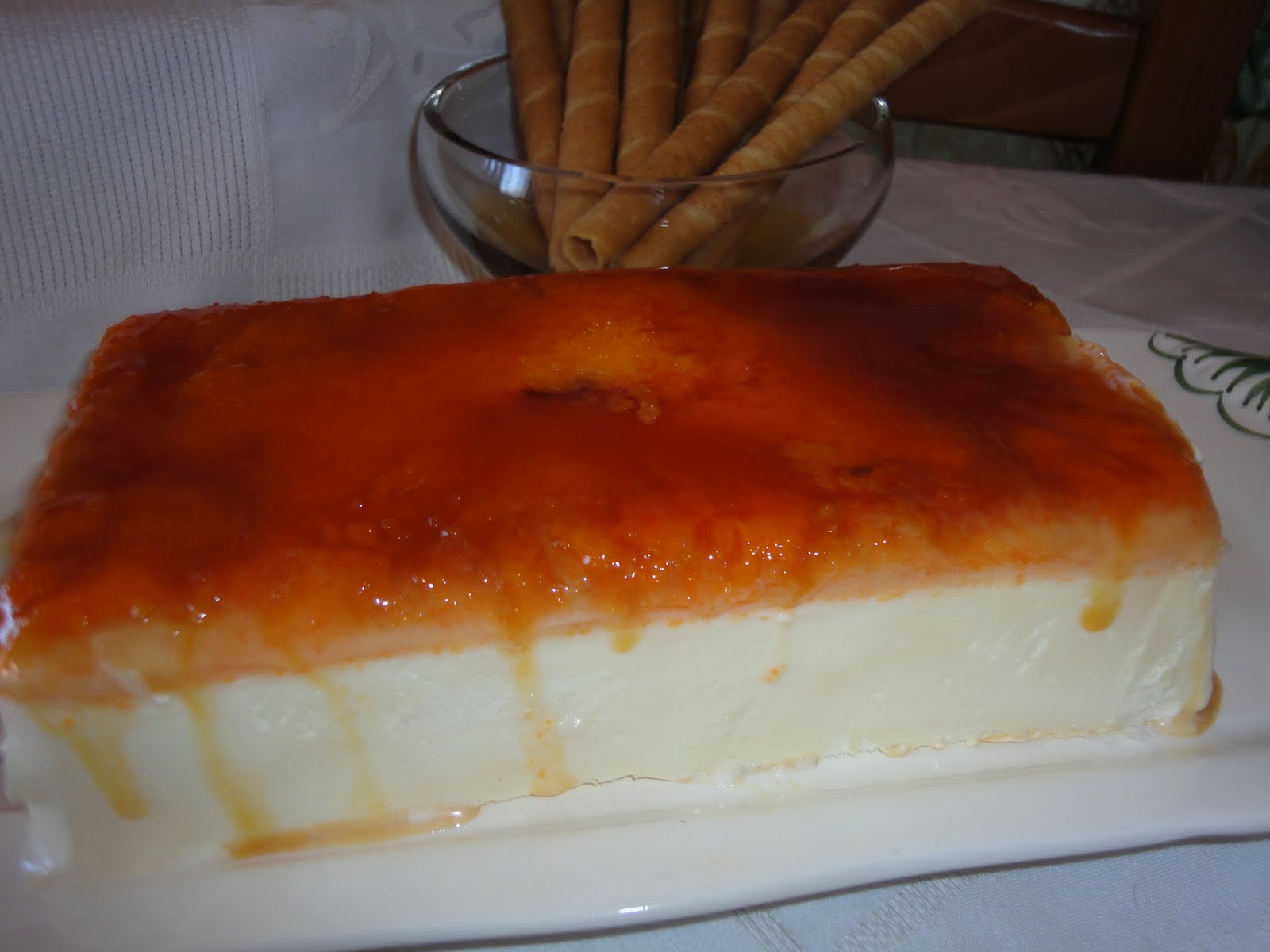 - Prepara o doce de ovos (pesquisa por ovos moles aqui no site) e deita por cima do caramelo já solidificado.